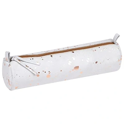 Clairefontaine Ref 400060C Cosmicuir' Suede Leather Round Pencil Case 5.5 x 22cm, Made From Genuine Lambskin Leather, Metal Zip With Puller Copper