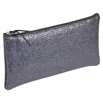 Clairefontaine Ref 410014C Céleste' Leather Flat Pencil Case 22 x 11cm, Made From Genuine Lambskin Leather, Metal Zip With Puller Blue