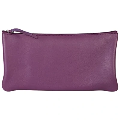 Clairefontaine Ref 410169C Coloured Leather Flat Pencil Case 22 x 11cm, Made From Genuine Lambskin Leather, Metal Zip With Puller Purple