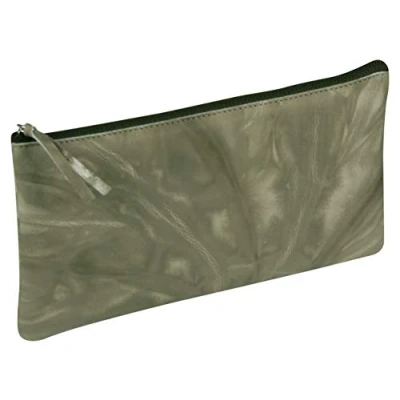 Clairefontaine Ref 410179C Tie & Dye Leather Flat Pouch 22 x 11cm, Made From Genuine Lambskin Leather, Metal Zip With Puller Autumn Green