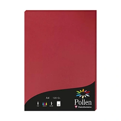 Clairefontaine Ref 4212C Pollen Coloured Paper (Pack of 50 Sheets) A4 (210 x 297mm), 120gsm Paper, Inkjet & Laser Printer Compatible, Acid Free Intensive Red