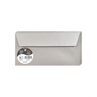 Clairefontaine Ref 50075C Pollen Iridescent Adhesive Envelopes (Pack of 20) DL (110 x 220mm) in Size, 120gsm Paper, Easy to Peel Strip Silver