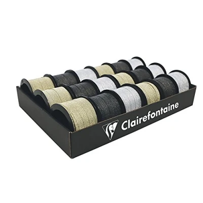 Clairefontaine Ref 612697C Paper Glitter Ribbon (Pack of 18) 10mm Width x 10m Length Suitable for Gift Wrapping, Decoration & Crafting Assorted Colours