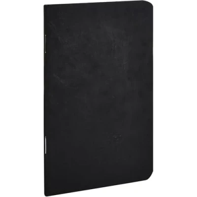 Clairefontaine Ref 734161C Age Bag Staplebound Notebook (96 Pages) 9 x 14cm, Lined Rulings, 90gsm Brushed Vellum Paper Black Leather Effect Cover