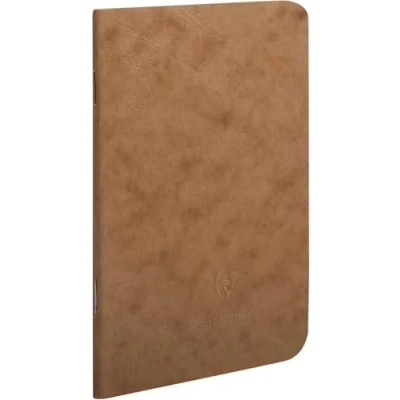 Clairefontaine Ref 73416C Age Bag Staplebound Notebook (96 Pages) 9 x 14cm, Lined Rulings, 90gsm Brushed Vellum Paper Brown Leather Effect Cover