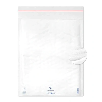 SIZE: inside 350x470 mm, outside 375x510 mm. CHARACTERISTICS: Envelopes developed for optimum protection of contents over time while preserving a reduced weight that minimizes postage costs. The structure of the envelope adapts to the contents for better protection. PACKAGING: Wrapped in film in packs of 10. Premium 80g/m² WHITE KRAFT PAPER covered with 35-micron barrier bubble film. Made in France.
