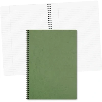 Clairefontaine Ref 781453C Age Bag Wirebound Notebook (100 Pages) A4 Size, Lined Rulings, 90gsm Brushed Vellum Paper, Pocket for Loose Documents Green Cover
