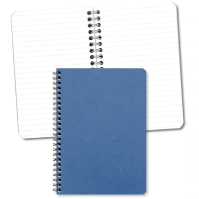 Clairefontaine Ref 785364C Age Bag Wirebound Notebook (100 Pages) A5 Size, Lined Rulings, 90gsm Brushed Vellum Paper, Pocket for Loose Documents Blue Cover