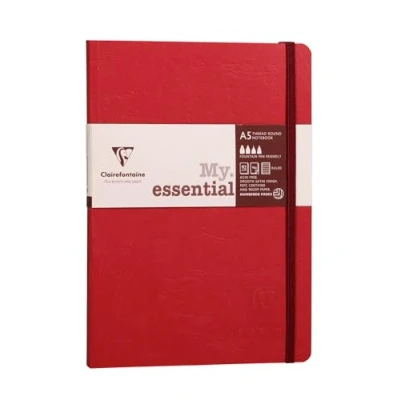 Clairefontaine Ref 793432C Age Bag Thread Bound Notebook (192 Pages) A5 Size, Dot Rulings, 90gsm Brushed Vellum Paper, Elastic Closure Red Cover