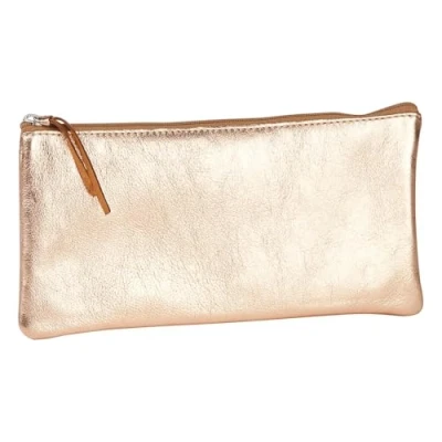 Clairefontaine Ref 8700C Metallic Leather Flat Pencil Case 22 x 11cm, Soft with Suede Interior, Metal Zip Puller Copper Colour