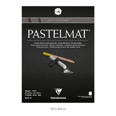 PASTELMAT BLOCK: this glued block of 360g card is ideal for the pastel technique. All leaves are anthracite. UNIQUE AND INNOVATIVE PAPER: the soft and adherent surface of Pastelmat paper makes it possible to multiply the layers of pigments without saturation effects and without fixative. Neither abrasive like sandpaper, nor soft like velvet paper, Pastelmat paper has to be tested! IDEAL FOR DRY PASTEL: this paper is ideal for the dry pastel technique. It allows you to receive energetic strokes such as the softest shadings. In addition, once wet or gummed, it retains its properties! It supports both wet techniques and alcohol without even affecting its grain or gripping surface! FORMAT 30x40: this pad of 12 sheets has between each sheet a crystal paper insert to protect your drawings! Its glued finish allows you to easily detach the sheets. ACID-FREE: this paper is acid-free and has a neutral pH for perfect preservation of the drawings over time. FINE ARTS SPECIALIST PAR EXCELLENCE: Clairefontaine Rhodia offers high-quality products adapted to your needs and to all drawing techniques.