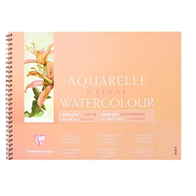 Clairefontaine Ref 96073C Etival Cold Pressed Wirebound Watercolour Painting & Drawing Pad (12 Sheets of Paper) 36 x 48cm 300gsm Cellulose Art Paper