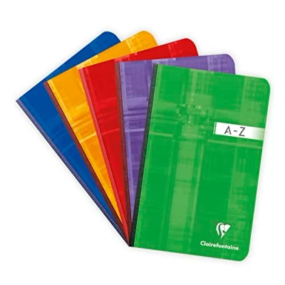 1 RANDOM COLOUR INDEX BOOK: chlorophyll green, violet, blue, orange or red. POCKET FORMAT: ultra-practical, take it everywhere with you! SWEET WRITING: SUPERIOR QUALITY Clairefontaine White Velvet Vellum 90 g/m² paper with remarkable opacity and strength. COVER: washable laminated card for longer notebook life. COMFORT AND QUALITY: cloth spine for flexibility, durability and perfect flat opening. ALPHABETICAL KEYS (A-Z): two-tone, plastic-coated for easier identification and greater durability MADE IN FRANCE and PEFC CERTIFIED: for sustainable forest management
