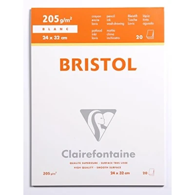 Clairefontaine Ref 96170C Bristol Extra White Paper Pad (20 Sheets) 24 x 32cm Size, 205gsm Suitable for Pencil, Technical Pen, Indian Ink, Felt Nibs