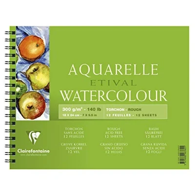 Clairefontaine Ref 96360C Etival Rough Grained Wirebound Pad (12 Sheets) 18 x 24cm Size, Acid Free, pH Neutral, 300gsm Paper Suitable for Watercolour Artwork