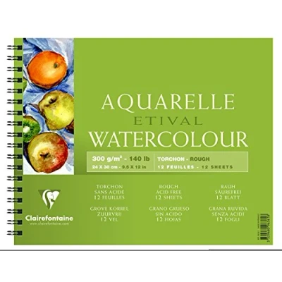 Clairefontaine Ref 96361C Etival Rough Grained Wirebound Pad (12 Sheets) 24 x 30cm Size, Acid Free, pH Neutral, 300gsm Paper Suitable for Watercolour Artwork