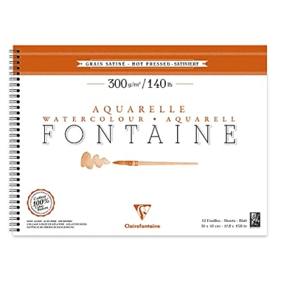 Clairefontaine Ref 96364C Fontaine Hot Pressed Watercolour Wirebound Pad (12 Sheets) 30 x 40cm Size, 300gsm Paper Suitable for Artwork