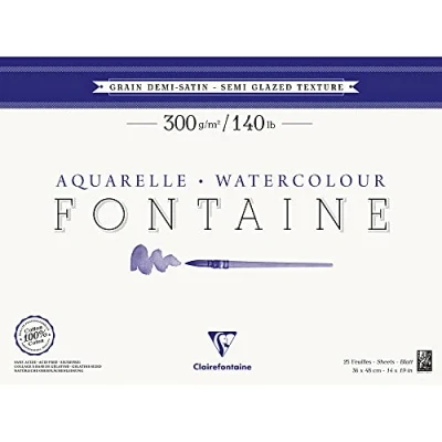 Clairefontaine Ref 96408C Fontaine Semi Hot Pressed Watercolour Glued Pad (25 Sheets) 36 x 48cm Size, 300gsm Paper Suitable for Artwork