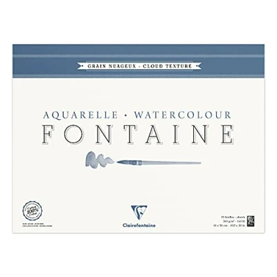 Clairefontaine Ref 96424C Fontaine Cloud Texture Watercolour Glued Pad (15 Sheets) 42 x 56cm Size, 300gsm Paper Suitable for Artwork