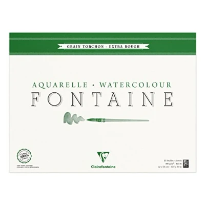Clairefontaine Ref 96432C Fontaine Extra Rough Watercolour Glued Pad (25 Sheets) 42 x 56cm Size, 300gsm Paper Suitable for Artwork