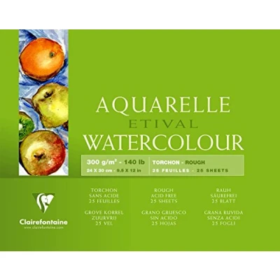 Clairefontaine Ref 96461C Etival Rough Grained Pad (25 Sheets) 24 x 30cm Size, Acid Free, pH Neutral, 300gsm Paper Suitable for Watercolour Artwork