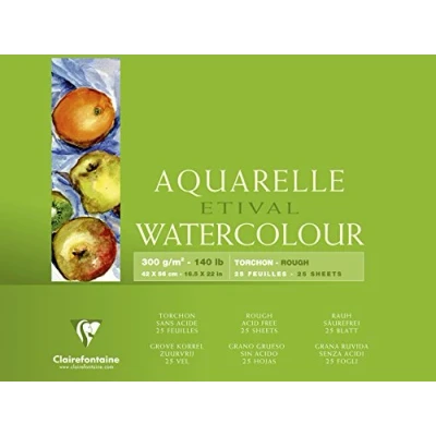 Clairefontaine Ref 96464C Etival Rough Grained Pad (25 Sheets) 42 x 56cm Size, Acid Free, pH Neutral, 300gsm Paper Suitable for Watercolour Artwork