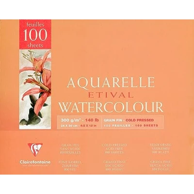 Clairefontaine Ref 96475C Etival Cold Pressed Glued Watercolour Painting & Drawing Pad (10 Sheets of Paper) 24 x 30cm 300gsm Cellulose Art Paper