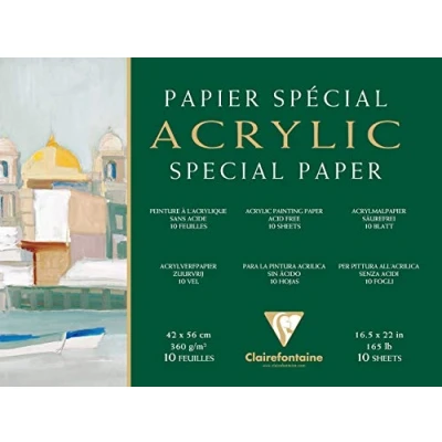 Clairefontaine Ref 96499C Acrylic Paper Pad (10 Sheets) 42 x 56cm in Size, 360gsm Paper, Acid Free, pH Neutral Suitable for Use With & Gouache Paints