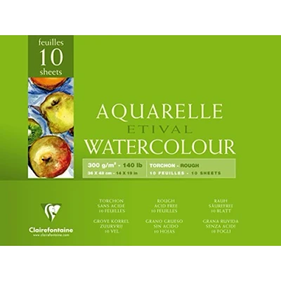 Clairefontaine Ref 96563C Etival Rough Grained Pad (10 Sheets) 36 x 48cm Size, Acid Free, pH Neutral, 300gsm Paper Suitable for Watercolour Artwork