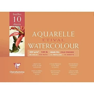 Clairefontaine Ref 96572C Etival Cold Pressed Glued Watercolour Painting & Drawing Pad (10 Sheets of Paper) 30 x 40cm 300gsm Cellulose Art Paper