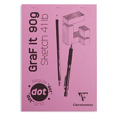 Clairefontaine Ref 96692C Graf It White Glued Dot Grid Sketch Pad (80 Sheets) A4 Size, 90gsm Drawing Paper, Pink Cover, Microperforated Sheets, Top