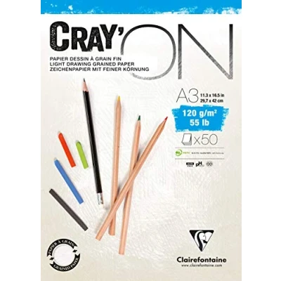 Clairefontaine Ref 975021C Cray'On White Glued Sketch Pad (50 Sheets) A3 (29.7 x 42cm) Size, 120gsm 100% Cellulose Paper, Grained One Size & Smooth Other Side