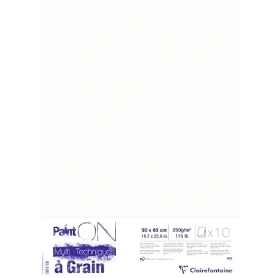 Clairefontaine Ref 975052C Paint'ON Multi Technique Paper with Grain (10 Sheets) 50 x 65cm, 250gsm Heavyweight Paper, Extra White, Acid Free, pH Neutral
