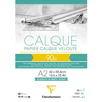 90g tracing paper: this quality tracing paper is dedicated to technical and creative uses! Perfectly stable to light, it does not yellow. HIGHLY TRANSPARENT: Very translucent, this paper is suitable for drawing with graphite pencil, colored pencil, felt-tip pen, marker, technical pen and ink. Very resistant, it can be erased or scratched without risk of tearing. VARIETY OF USES: this paper is perfect for making geometric works and for art lessons. A2 FORMAT: the 50 sheets of this glued block are easily detachable to meet your creative needs at any time. ACID-FREE: this PEFC-certified paper is acid-free and pH-neutral for perfect preservation of drawings over time. It is also perfectly biodegradable and recyclable. FINE ARTS SPECIALIST PAR EXCELLENCE: Clairefontaine Rhodia offers high-quality products adapted to your needs and to all drawing techniques.