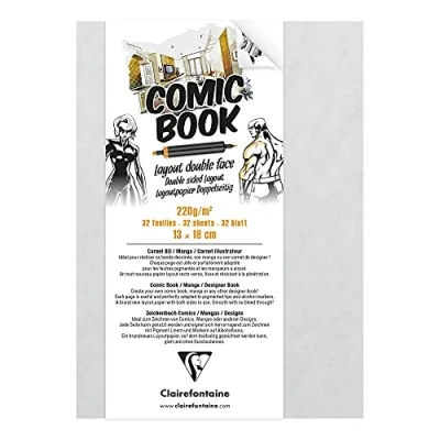 Clairefontaine Ref 975196C Double Sided Manga & Cartoon Layout Paper Book (32 Sheets) 13 x 18cm in Size, 220gsm Heavyweight Smooth Suitable for Use with Alcohol Markers