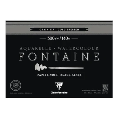 Clairefontaine Ref 975303C Fontaine Cold Pressed Black Watercolour Pad (15 Sheets) 26 x 36cm Size, 300gsm Paper Suitable for Artwork