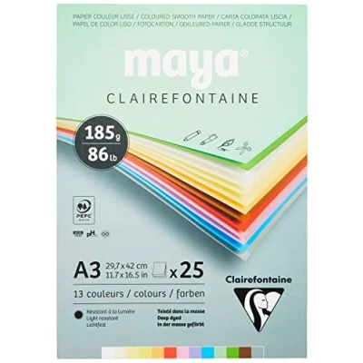 Clairefontaine Ref 975335C Maya Pastel Coloured Drawing Pad (Pack of 25 Sheets) 185gsm Paper A3 (42 x 29.7cm) Assorted Colour Deep Dyed, Acid Free, pH Neutral