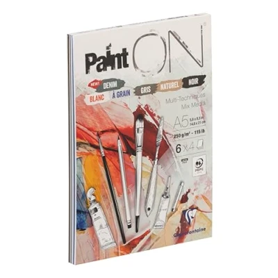MATCHING PAINTON PAPER: this 100% cellulose paper is THE perfect compromise between dry and wet techniques! Thanks to its heavy weight, this versatile paper resists scratching and supports several coats. It also has good absorption capacity. ASSORTED WITH 6 PAPERS: this assortment of 6 papers with different colours and surfaces is very popular for testing the diversity of the PaintON range. Its versatility makes it very attractive and offers greater creative possibilities. MULTI-TECHNICAL PAPER: a real mix-media, this paper is suitable for drawing with pencil, felt-tip pen or pen but is also perfectly suited to gouache, ink or acrylic. A5 SIZE: this glued pad of 4 sheets of each of the 6 papers is ideal for anyone looking for an excellent value for money product. Its finish allows you to keep your works or easily detach them without tearing them. ACID-FREE: this PEFC-certified paper is acid-free and pH-neutral for perfect preservation of drawings over time. FINE ARTS SPECIALIST PAR EXCELLENCE: Clairefontaine Rhodia offers high-quality products adapted to your needs and to all drawing techniques.