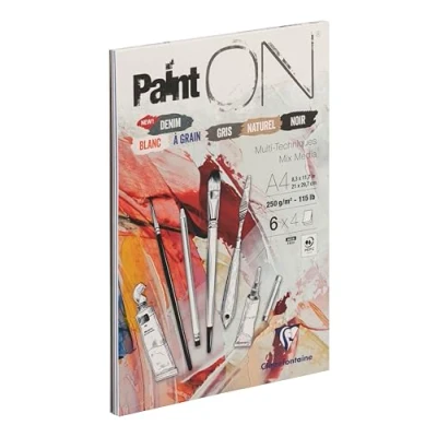 MATCHING PAINTON PAPER: this 100% cellulose paper is THE perfect compromise between dry and wet techniques! Thanks to its heavy weight, this versatile paper resists scratching and supports several coats. It also has good absorption capacity. ASSORTED WITH 6 PAPERS: this assortment of 6 papers with different colours and surfaces is very popular for testing the diversity of the PaintON range. Its versatility makes it very attractive and offers greater creative possibilities. MULTI-TECHNICAL PAPER: a real mix-media, this paper is suitable for drawing with pencil, felt-tip pen or pen but is also perfectly suited to gouache, ink or acrylic. A4 SIZE: This glued pad of 4 sheets of each of 6 papers is ideal for anyone looking for an excellent value for money product. Its finish allows you to keep your works or easily detach them without tearing them. ACID-FREE: this PEFC-certified paper is acid-free and pH-neutral for perfect preservation of drawings over time. FINE ARTS SPECIALIST PAR EXCELLENCE: Clairefontaine Rhodia offers high-quality products adapted to your needs and to all drawing techniques.
