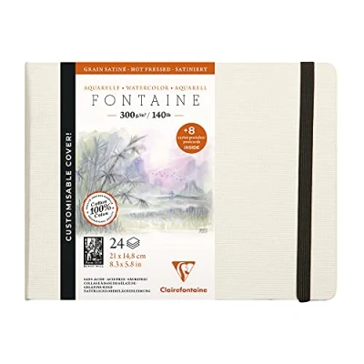 Clairefontaine Ref 975441C Fontaine Hot Pressed Sewn Watercolour Book (24 Sheets) 21 x 14.8cm Size, 300gsm Paper Suitable for Artwork, Black