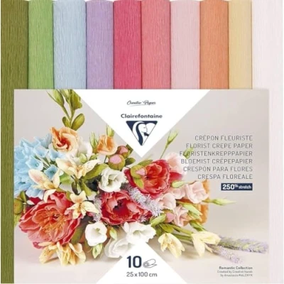 Clairefontaine Ref 995000C Florist Crepe Paper (Pack of 10) 25cm Width x 100cm Length, Heavyweight, Malleable, High Elasticity Assorted Pastel Colours