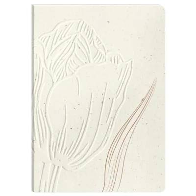 DECORS : Sprinkled with scraps of tulip bulbs destined for the scrap heap, tulip paper combines aesthetics and refinement, and is part of a circular economy and eco-responsible approach. The printed pattern adds a touch of depth to the embossing. BROCHED BINDING: This binding offers flexibility, good durability and allows perfect flat opening. POCKET FORMAT: 10.5x14.8 cm A6 notebook: ultra-practical, easy to carry, 128 plain pages, suitable for professional or family use. GENTLE WRITING: Clairefontaine Ivoire Vélin Velouté 90 g/m² paper of superior quality with remarkable opacity and strength. PEFC-certified for sustainable forest management SAVOIR FAIRE FRANÇAIS : Fabriqué par Clairefontaine Rhodia, leader des fournitures scolaires et de bureaux