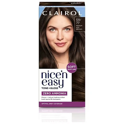 CLAIROL NICE'N EASY TONE+GLOSS SEMI PERMANENT HAIR DYE 511/77 MEDIUM ASH BROWN