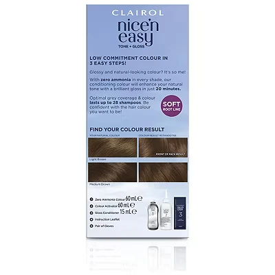 Clairol Nice'n Easy Tone+Gloss Semi Permanent Hair Dye 600/755 Light Brown