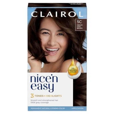 Clairol Nice'n Easy Crème, Natural Looking Oil Infused Permanent Hair Dye, 5C Medium Cool Brown, 1 Count (Pack of 1)