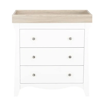 Clara Baby Changing Unit with Drawers 2in1 Dresser & Table 3 for Clothes Nappy Station White Ash Nursery Furniture