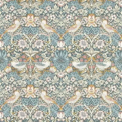 WallpaperDirectOne of William Morris's most iconic patterns, telling a story of a playful, fruit-thieving bird amongst vibrant and busy entwining flowers. With a reduced scale, this design is sure to catch the eye. Seen here in the Slate/Blush colourway.