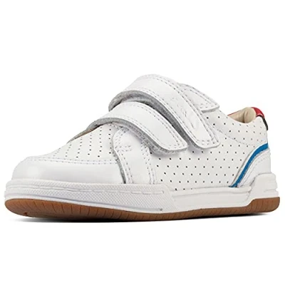 Clarks Boy's Fawn Solo K Sneaker, White leather, 11 UK Child