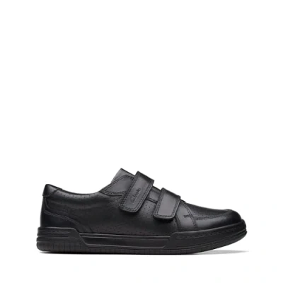 Clarks Boys Fawn Strap O Sneaker, Black Leather, 2 UK Wide
