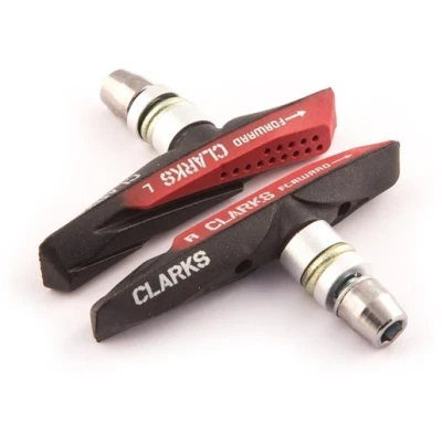 POLYCARBONATE CARRIER DESIGN - Upgrade or replace your brakes with this pair of top performing Mountain Rim Brake Pads from Clarks, the perfect solution for replacing your brake pads, compatible with all mountain bikes ENHANCED FEATURES - Measuring 72mm in length, these brake pads have a unique aqua design for greater water displacement, with threaded or smooth post options available. They come in standard or all-weather compounds so you can choose the best pads to match your riding needs COMPREHENSIVE KIT - These brake pads have a stylish dual contour design in black and red and can be used to replace front and rear pads, with one pair of brake pads included with each purchase along with an extra set of brake cartridges COMPATIBILITY - These brake pads are compatible with standard rims on all brands of mountain bike, giving you everything you need to ensure your bike has optimal stopping power, no matter whether you use it regularly for commuting, training or for leisure EXCEED YOUR LIMITATIONS - Clarks Cycle Systems are a trusted cycle manufacturer with a reputation for premium products at value for money, ensuring high-quality bike parts with great design functionality and excellent performance. Become part of the Clarks family today. Spacers to adjust toe and reach